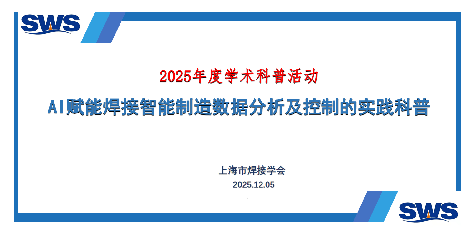 上海市焊接学会开展2025年度“AI赋能焊接智能制造数据分析及控制的实践科普”学术科普活动