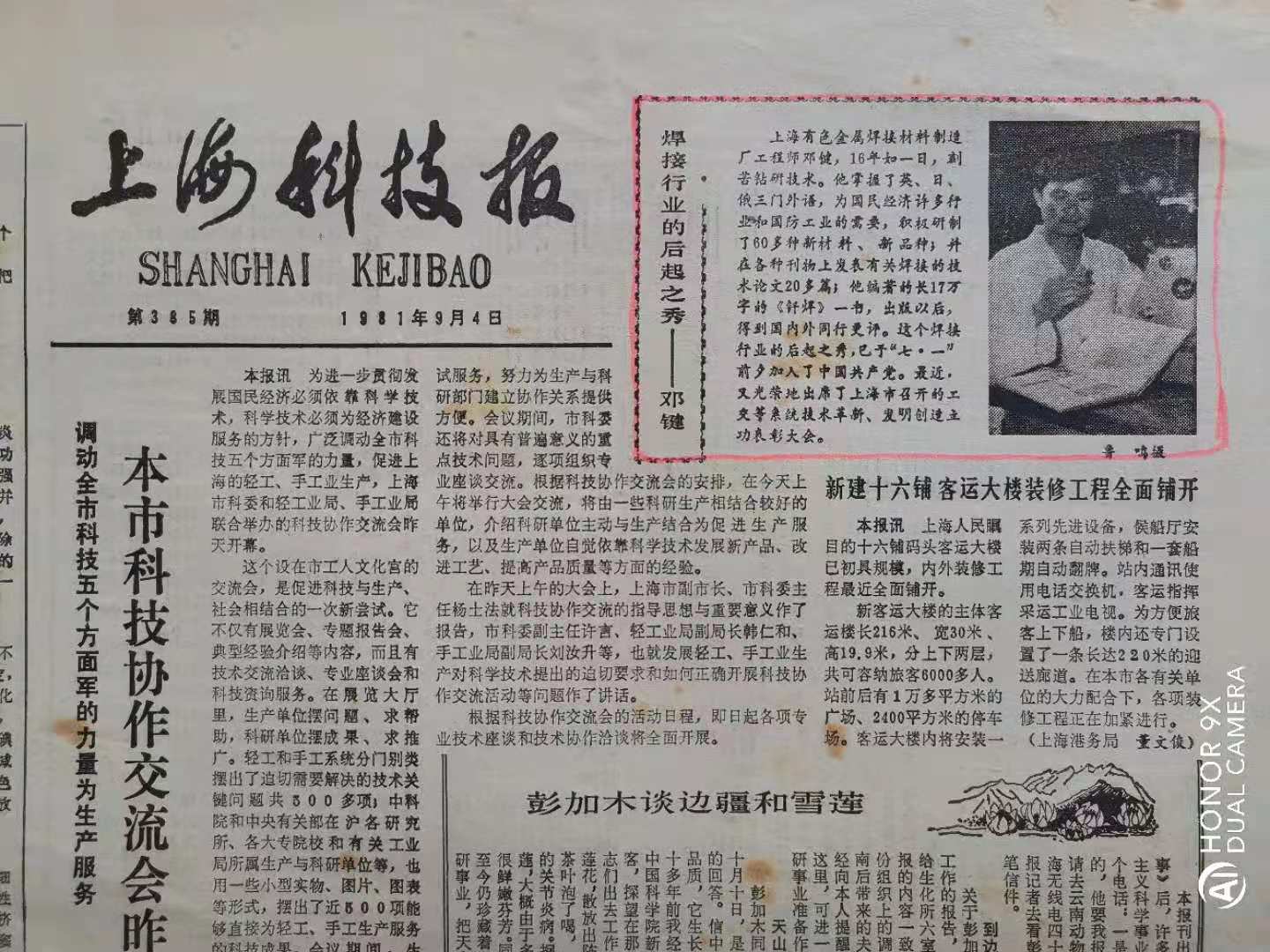 回顾自己的入党旅程,可以说是漫长的。由于我因家庭以及伯父和叔叔是原国民党高级将领等历史因素,入党对于我考察就长得多了。上世纪六十年代学生时代我就提交了入党申请书,参加工作以后再次申请,尽管文革使有些人对入党产生观望态度,但三中全会给我带来希望。我在工作中作出了成绩,尽管还有争议,我终于幸运地在1981年七一前夕加入了光荣的中国共产党。当时上海科技报还在第一版发消息和刋登照片。