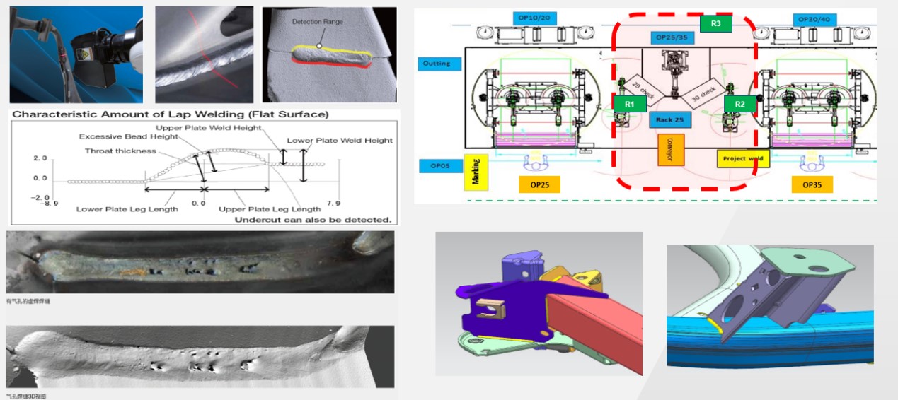 三、焊缝表面质量系统采用激光扫描检测方式对零件三维检测,检测点包括:缺陷、焊接质量、 错位、焊缝尺寸、缺焊、孔洞、咬边等,保证焊接质量。